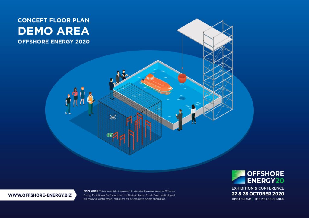 Does your company supply safety equipment? Lifeboats, safety gear, underwater camera’s, inspection drones or maybe you are specialized in working at difficult heights? Show your audience what this equipment can do in real life. The new Demo Area combines a large pool, rigging tower and drone flying cage and gives exhibitors the opportunity to present their company and tools to a live audience during the exhibition.